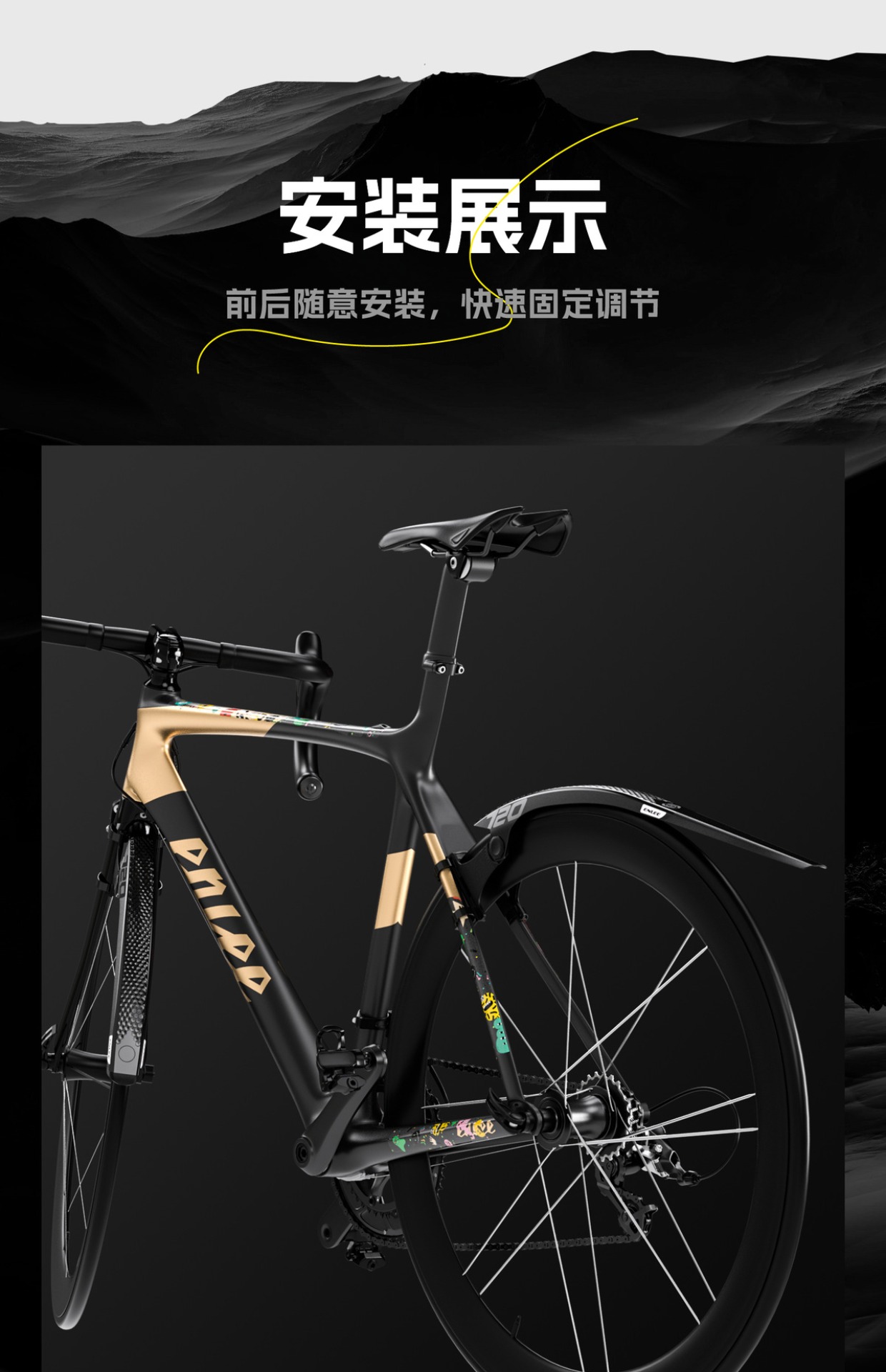 公路车挡泥板自行车瓜车快拆加长挡雨板可调节700C泥除骑行配件