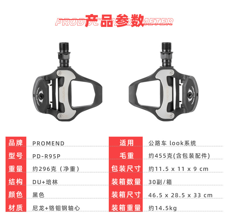 配件:适用于LOOK系统锁片2个,垫片6个,螺丝6个