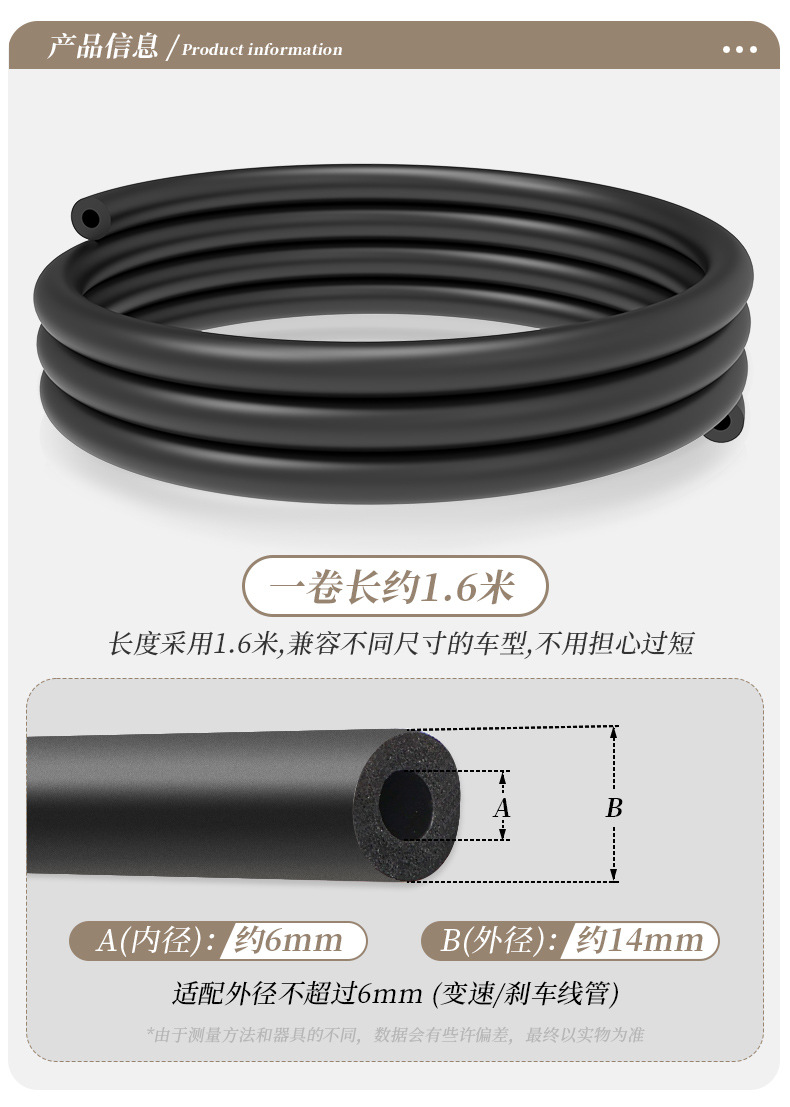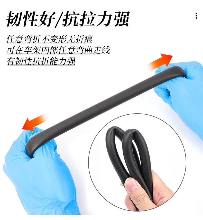 特点:全新料发泡海绵,柔软、韧性足,减少车架内部线管震动异响,有效降低噪音,避免线管与车架内部摩擦。