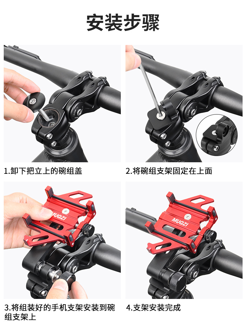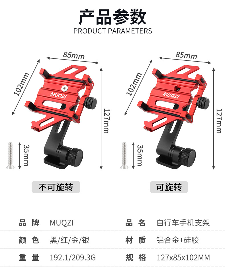 工艺:CNC车削,轻量化设计,阳极氧化,随便摇晃不会掉/适合多种手机。机械锁死,宽度调节,广泛兼容。可调节款支架能360°/90°旋转。