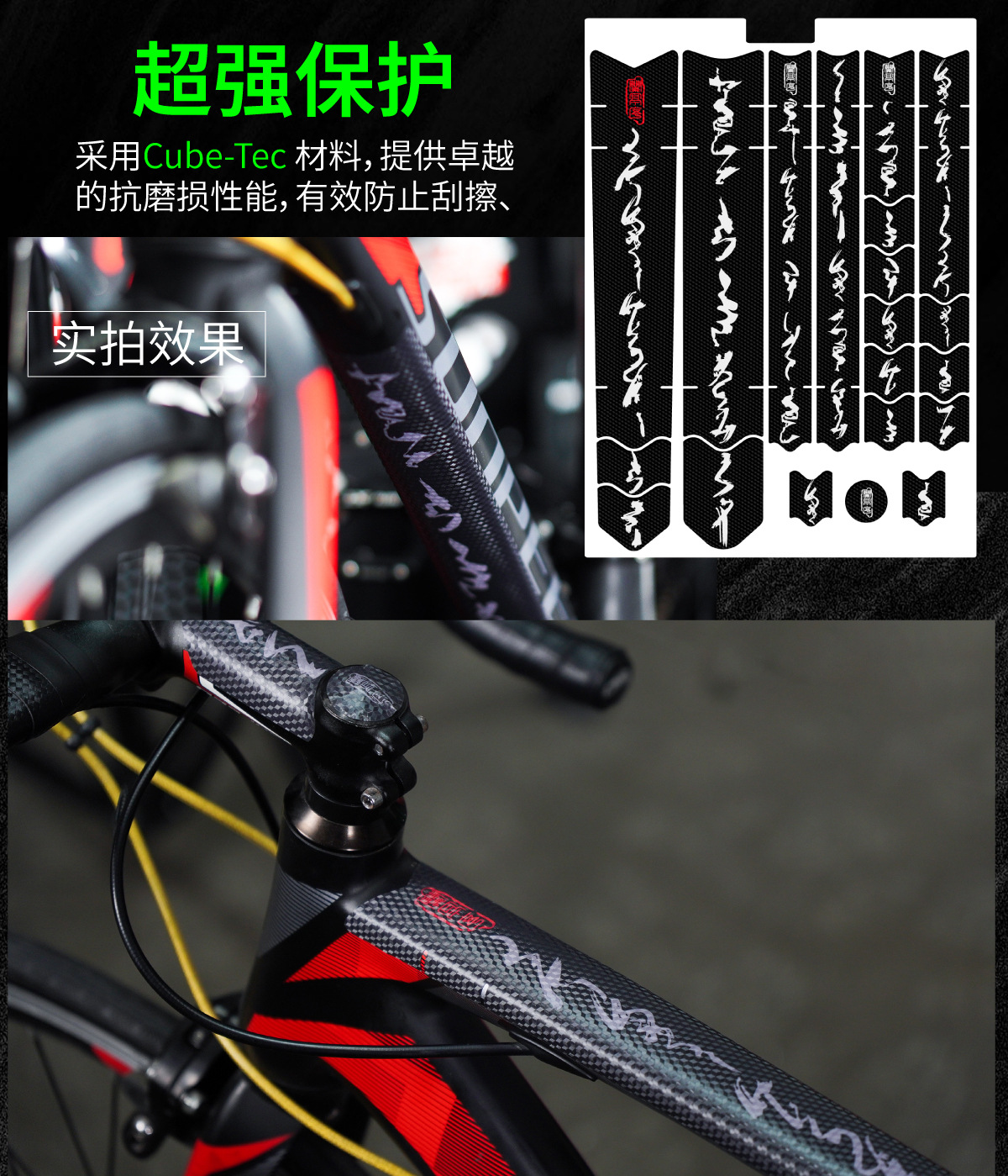 自行车保护膜国风书法耐磨砾石公路车防刮车衣车膜涂装贴纸护链