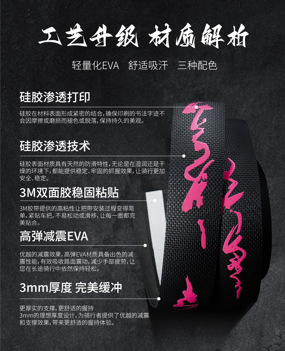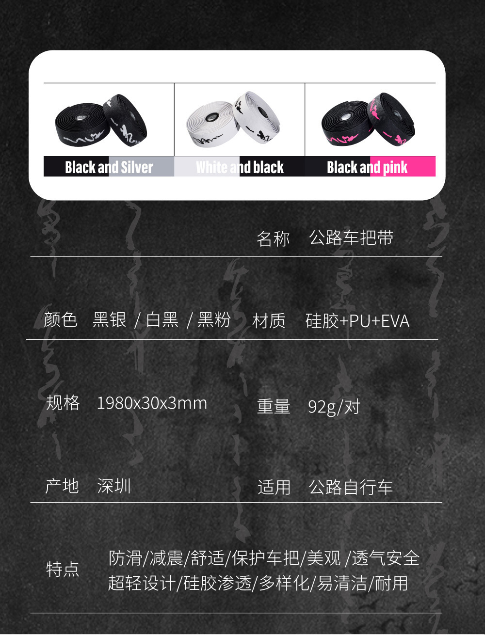 车把带防滑耐磨自行车弯把缠绕把带书法国风高弹性耐脏PU