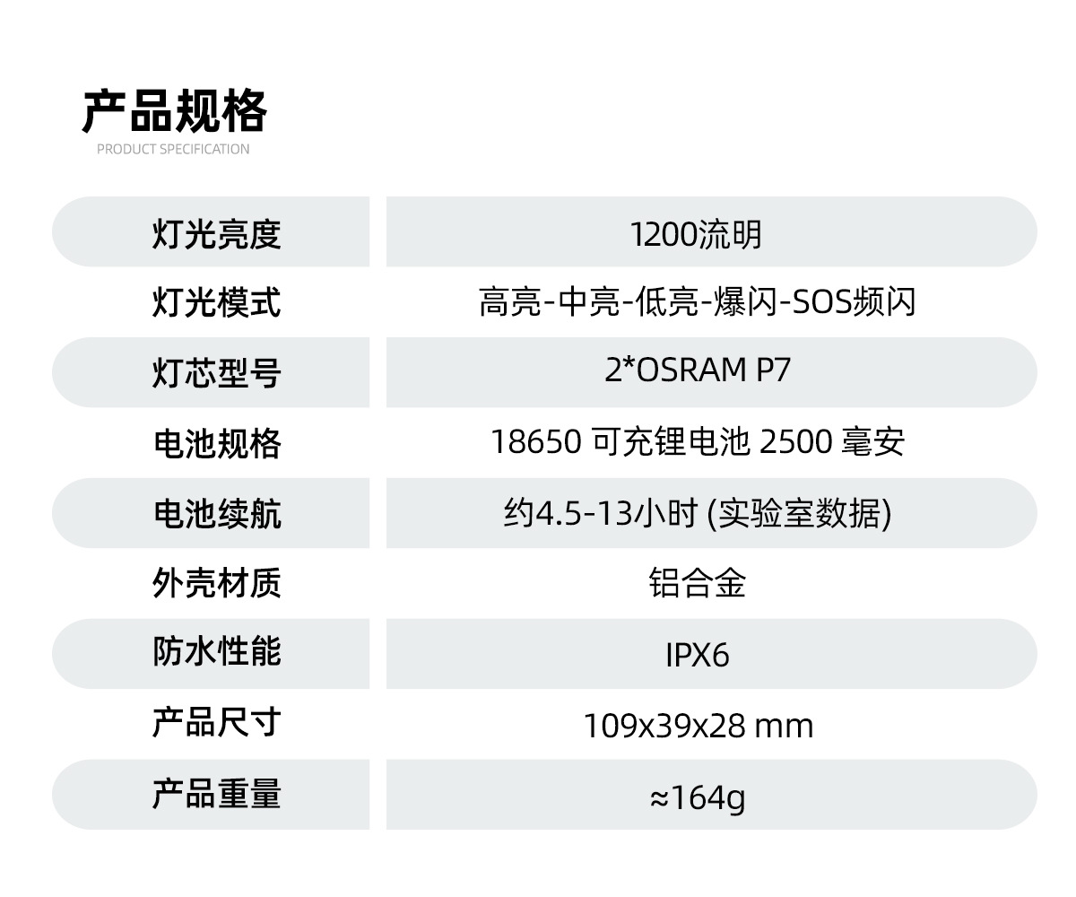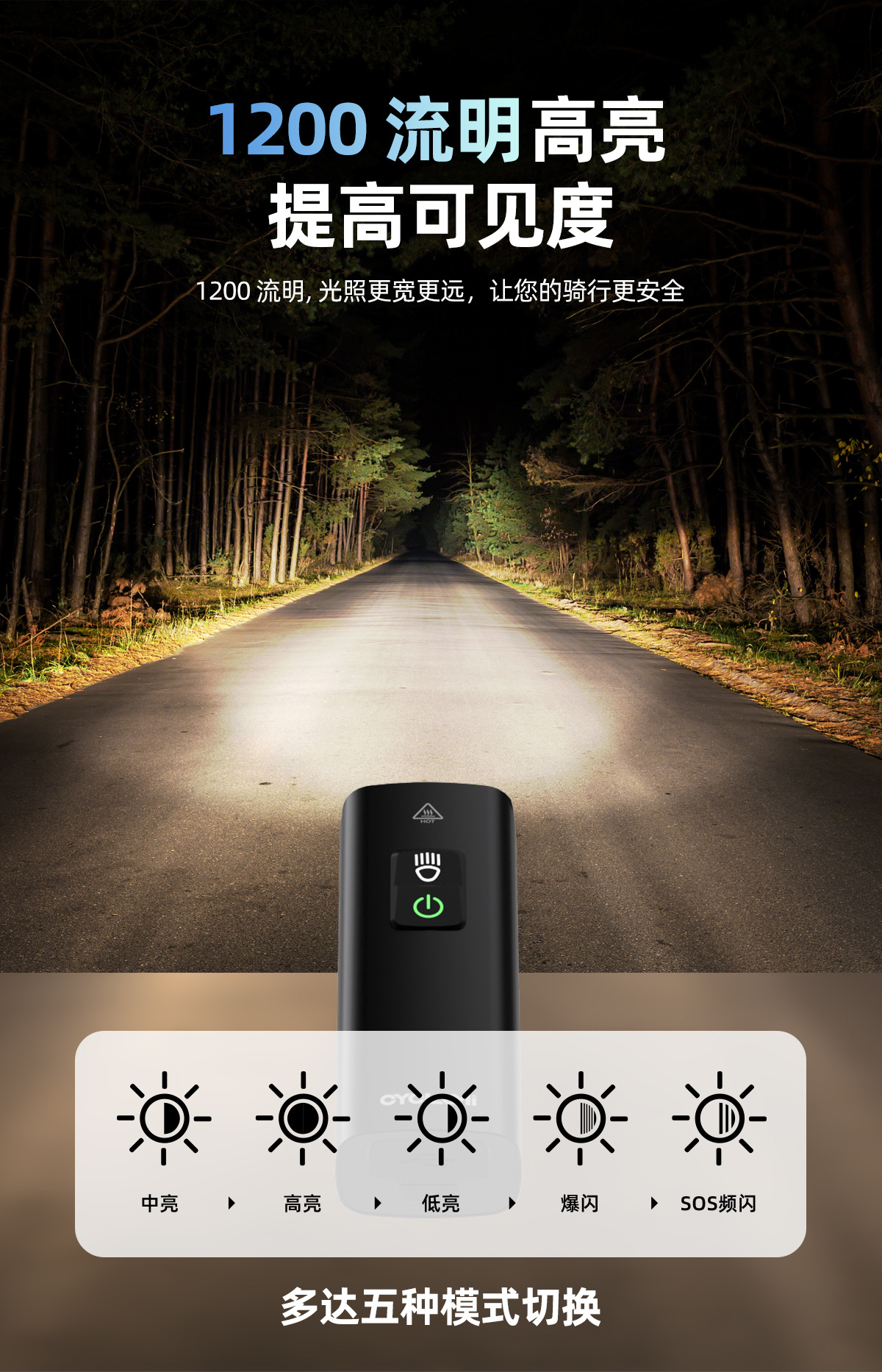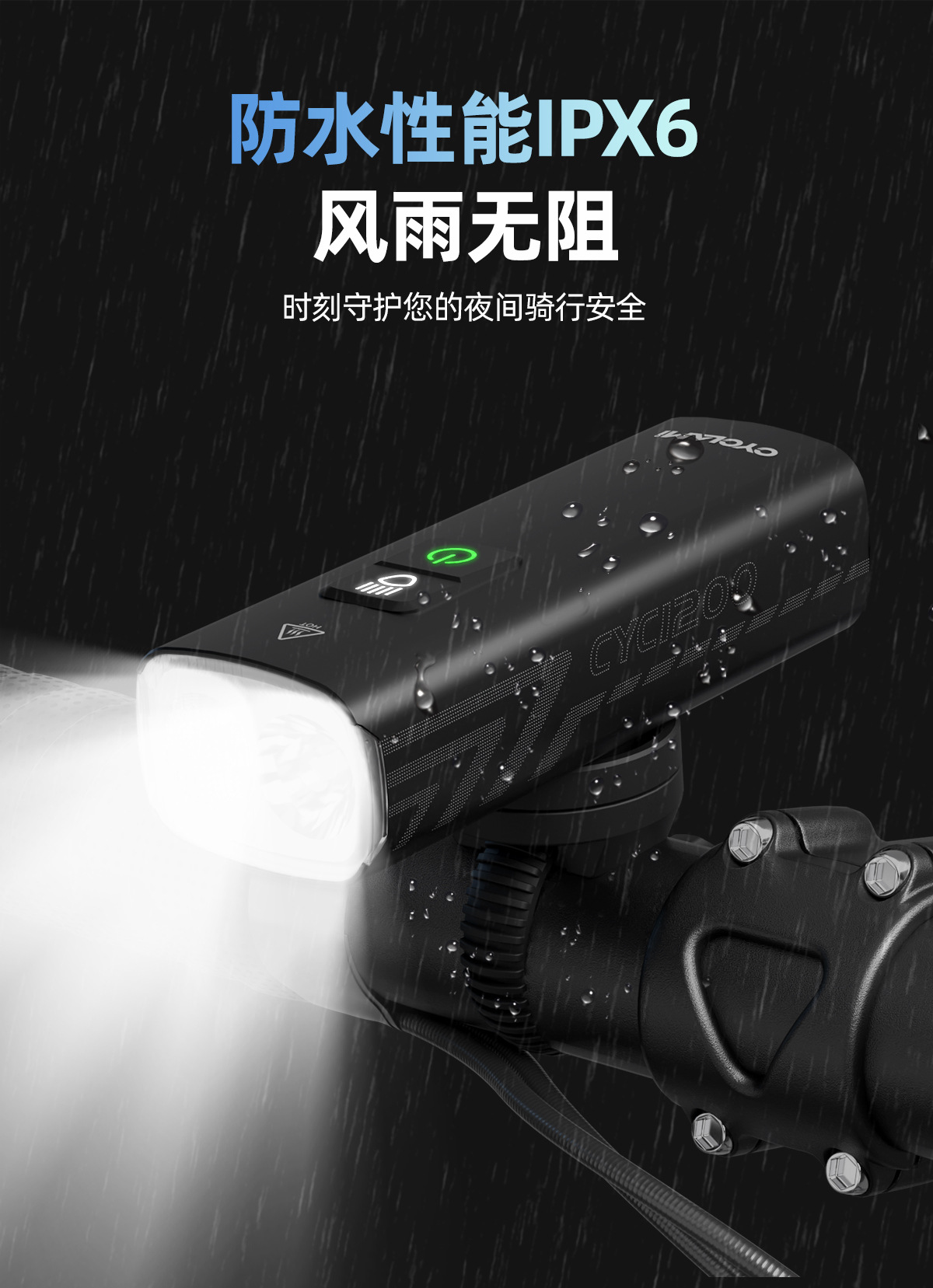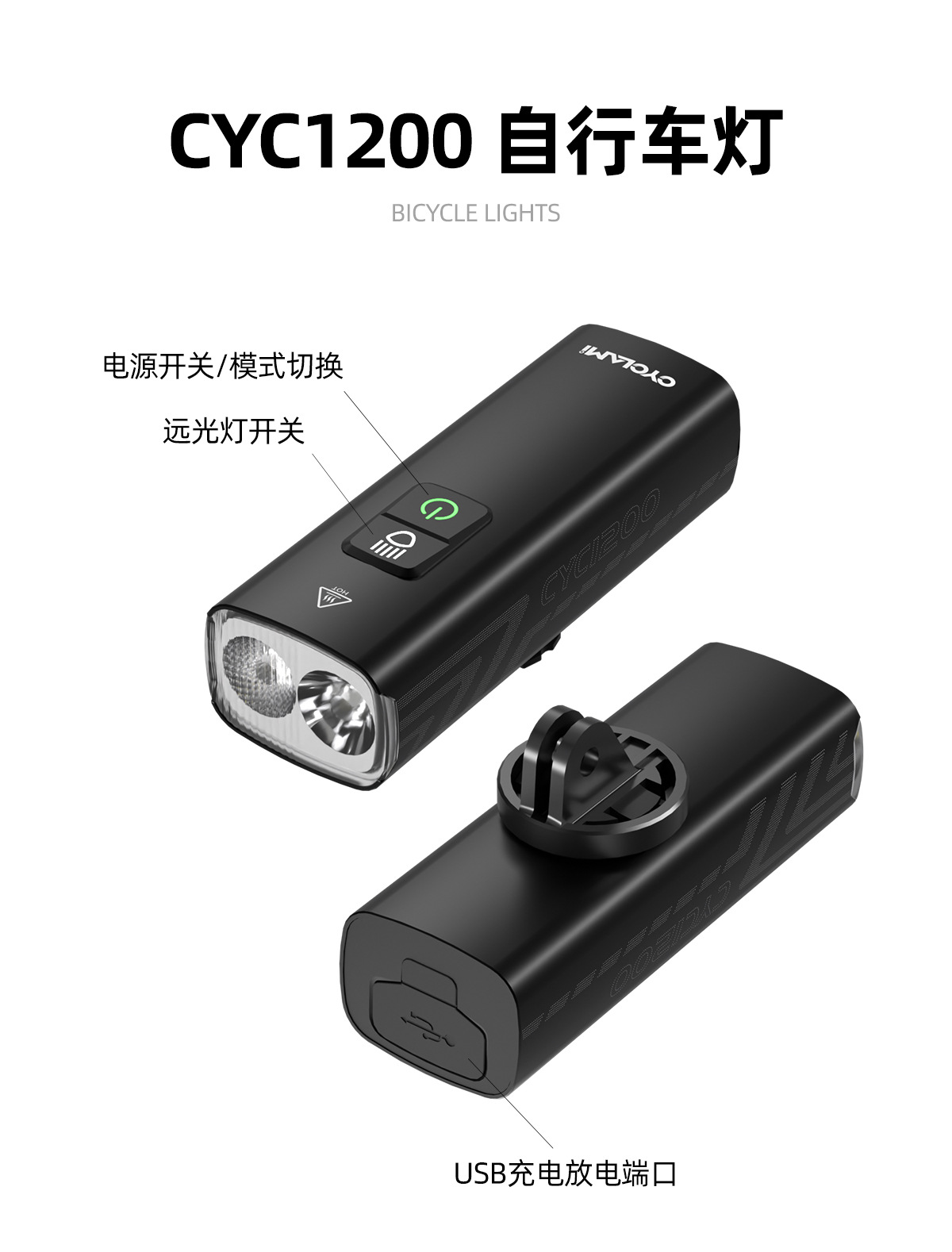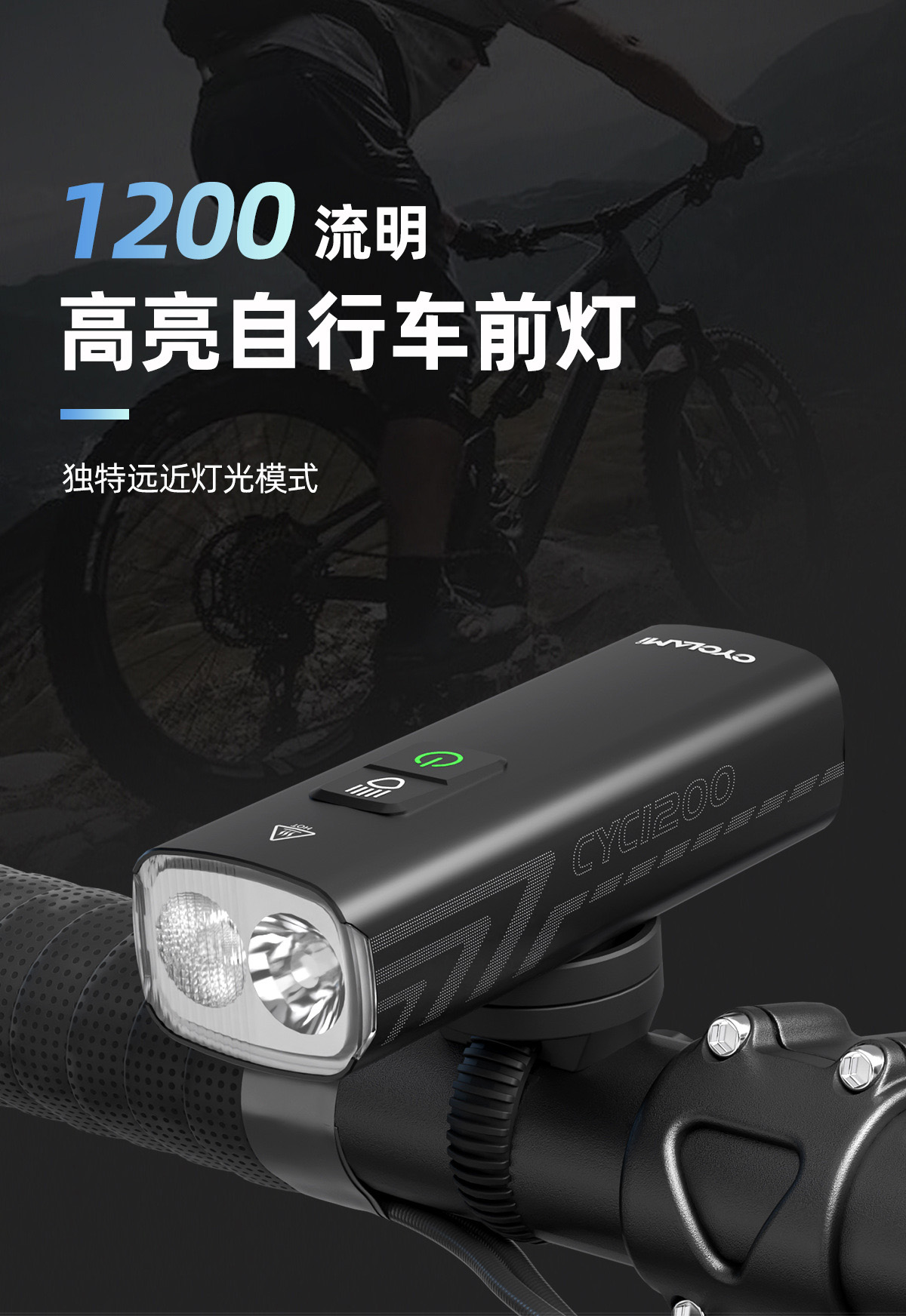 自行车灯前灯铝合金夜骑强光手电筒1200流明车前灯骑行正吊装装备