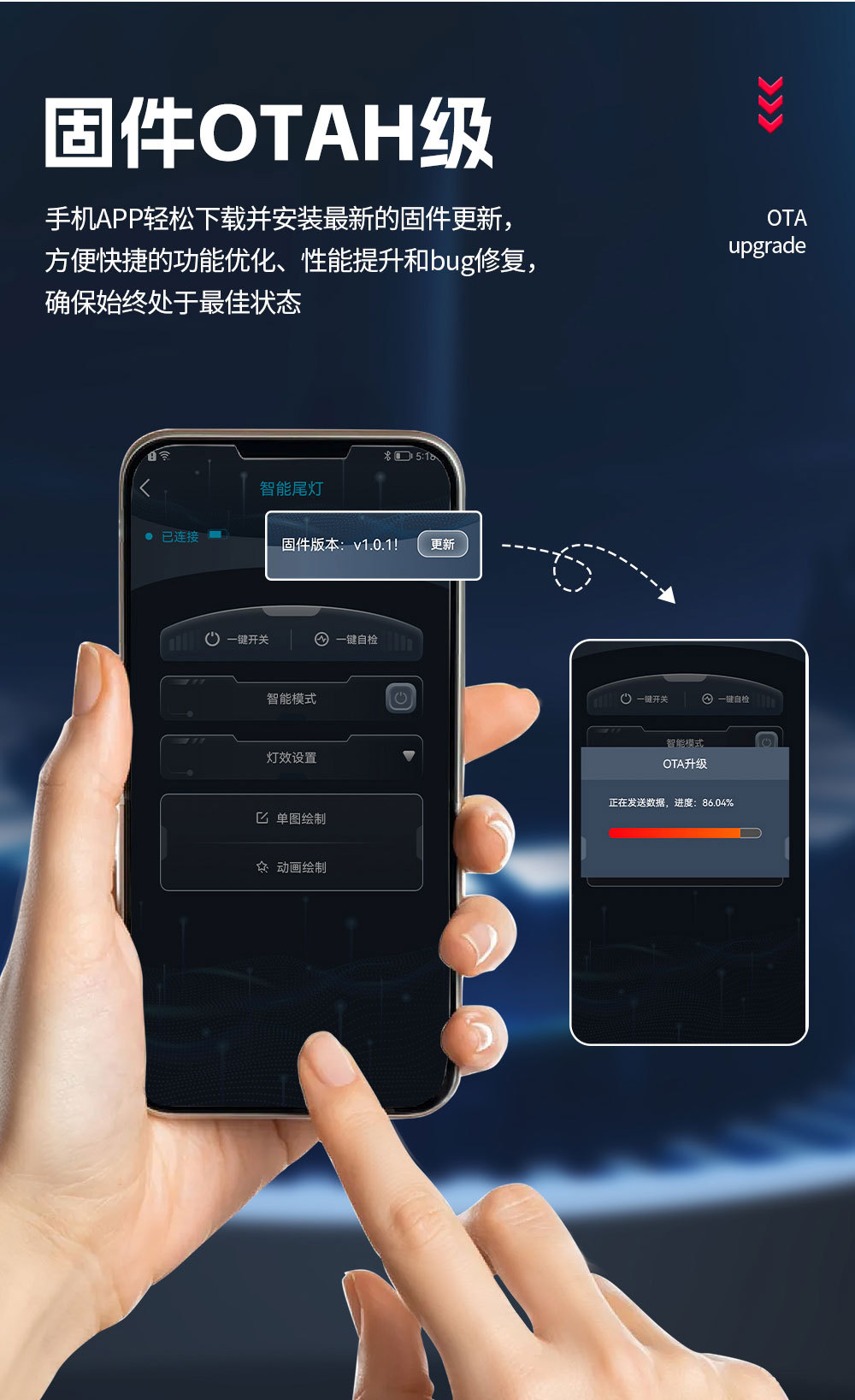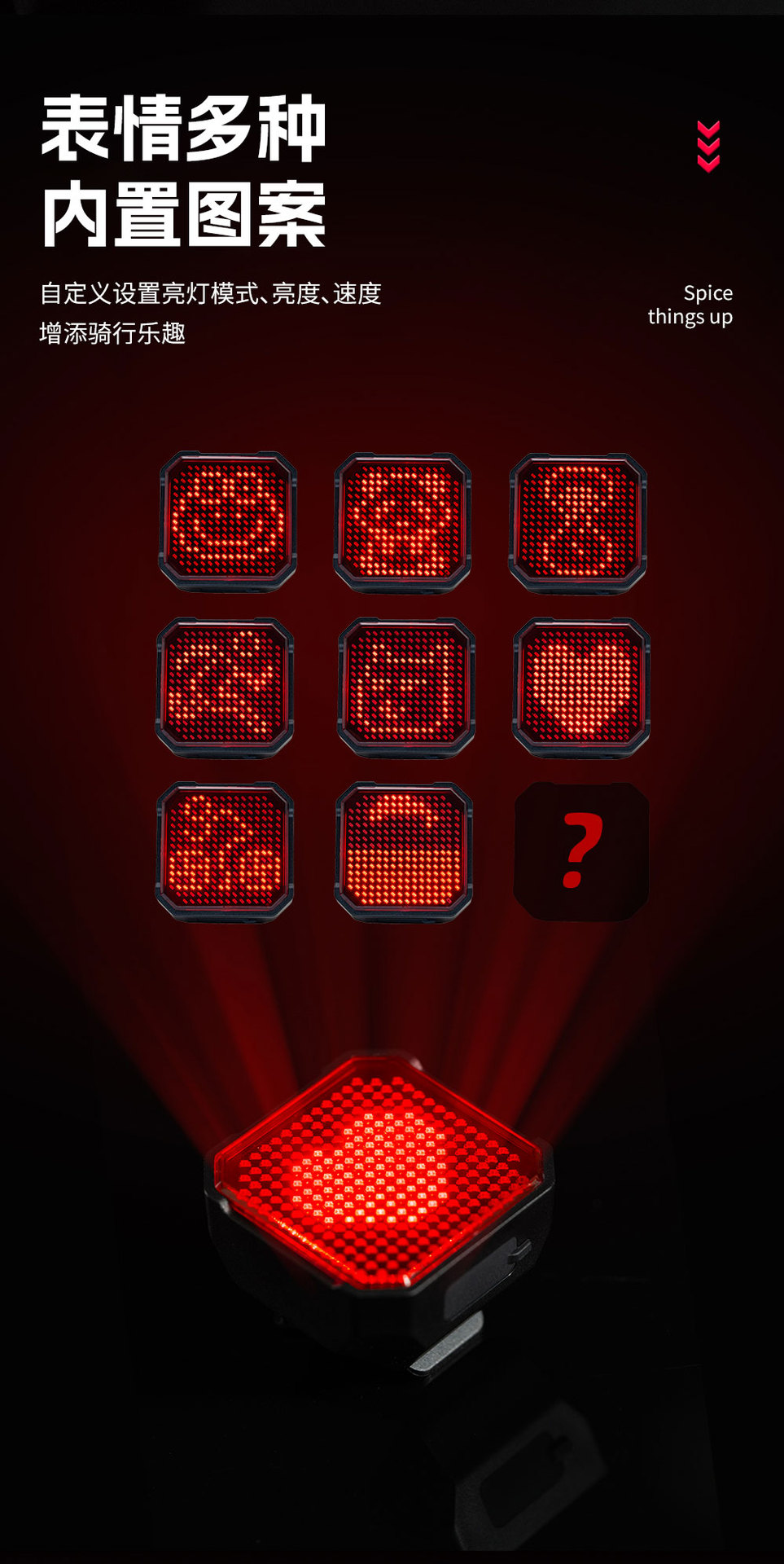 自行车同频智能自定义表情图案尾灯DIY刹车灯公路车夜骑警示灯