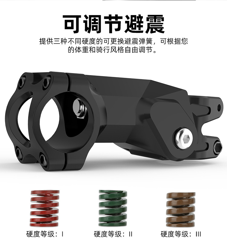特点:缓冲避震、避震调节、轻量化。出货配3个不同强度的减震弹减震弹簧为航空合金材质