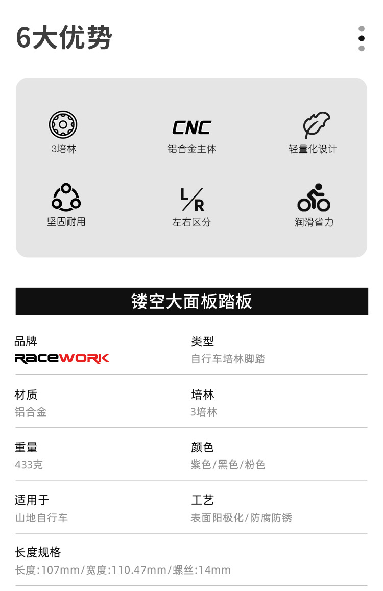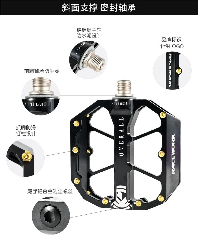 特点:铝合金主体,加宽踏面,密封三培林,CNC精抛光双洗,精细化优化设计更好应对各种林道和山地越野骑行山地速降等极限运动!
