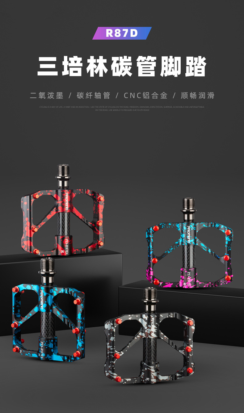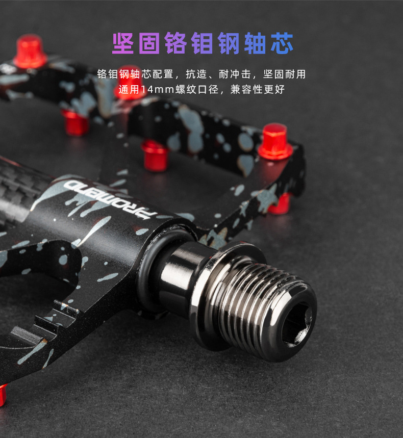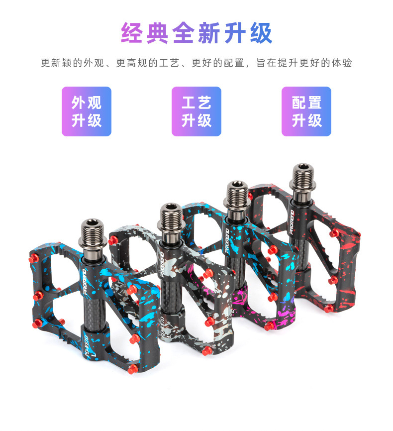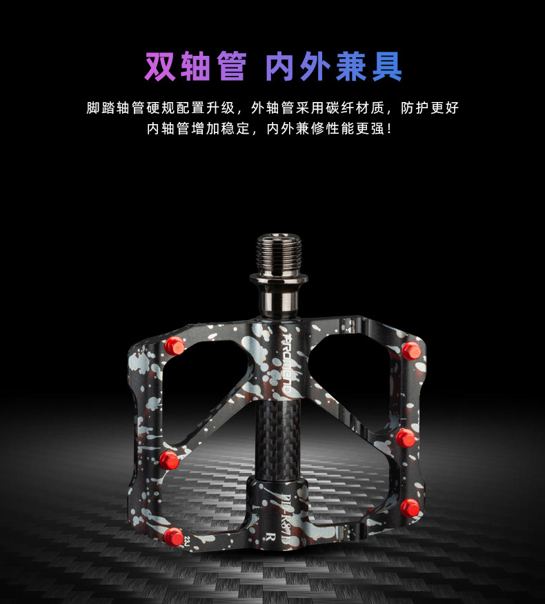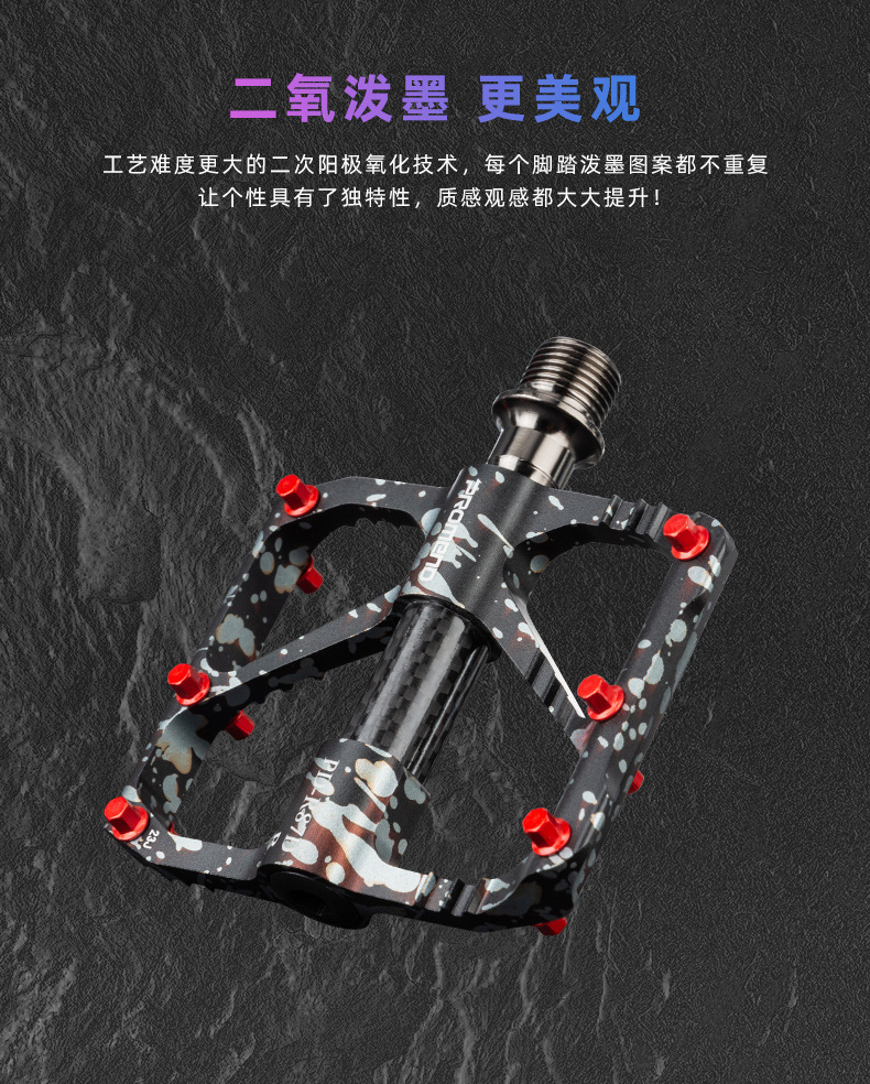 自行车脚踏板水墨迷彩防滑钉三培林铝合金碳纤维管山地公路车脚蹬