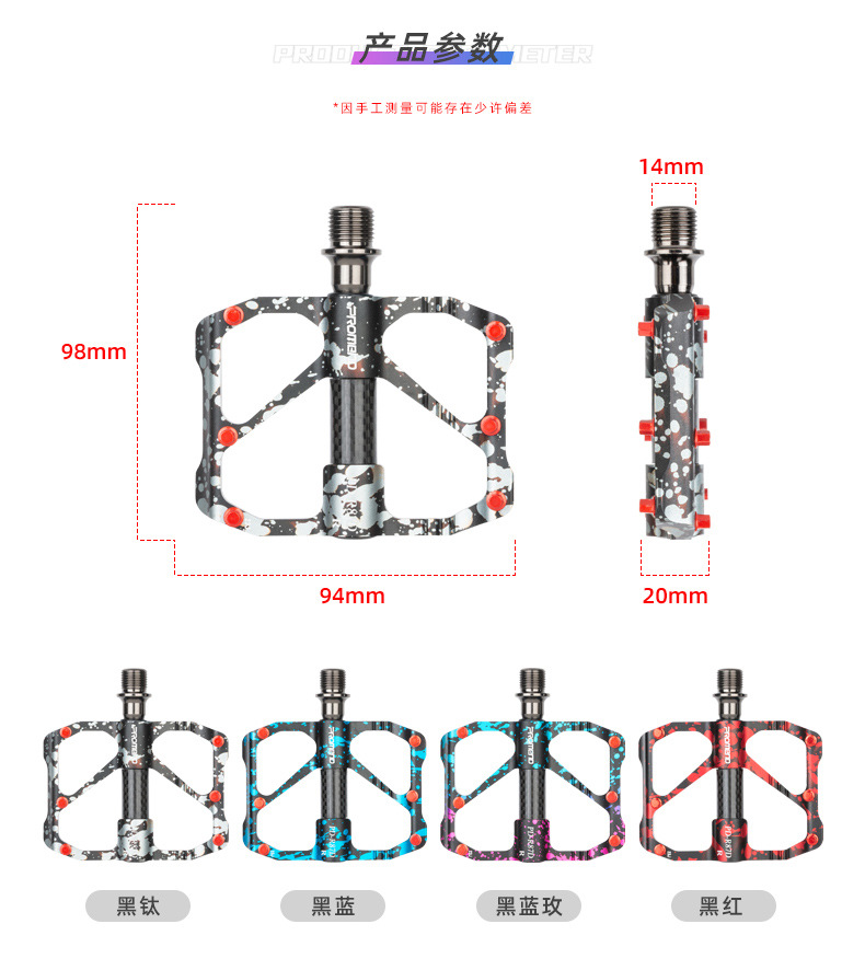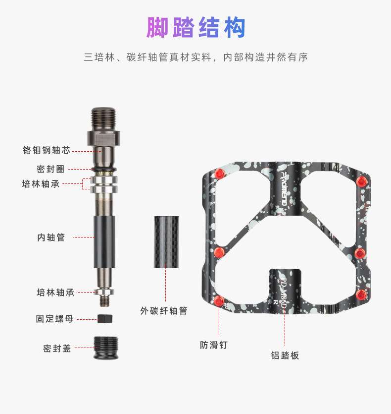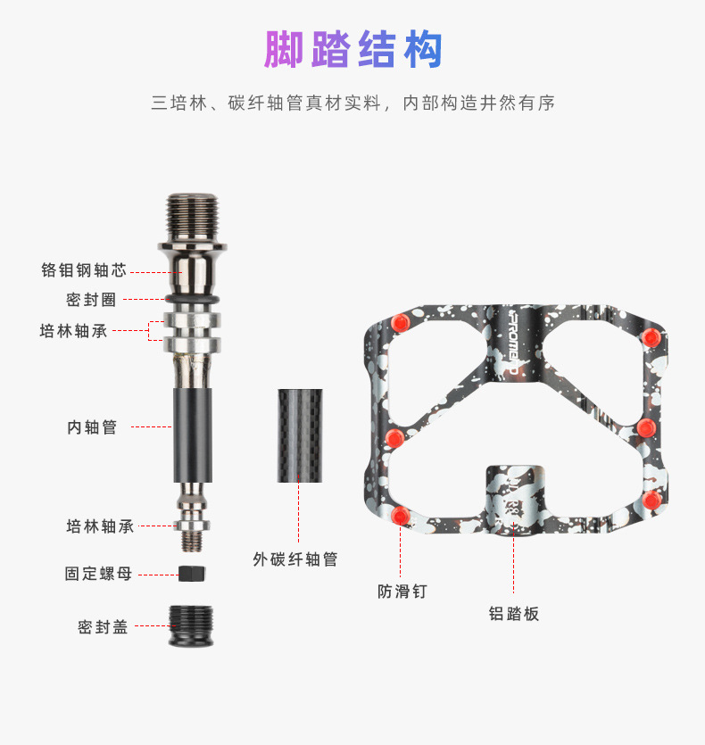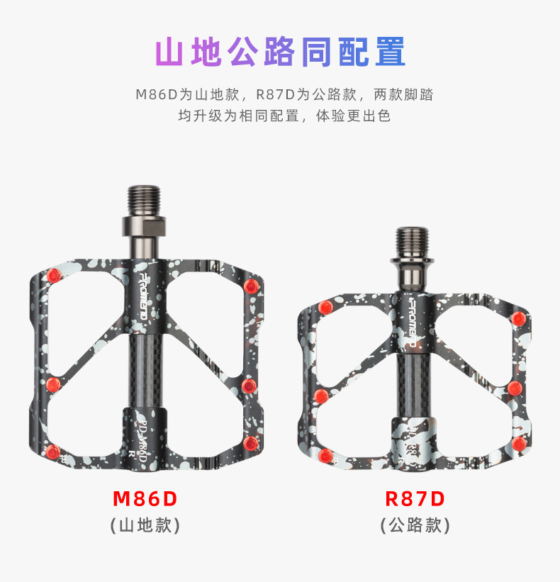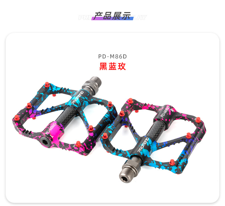 自行车脚踏板水墨迷彩防滑钉三培林铝合金碳纤维管山地公路车脚蹬