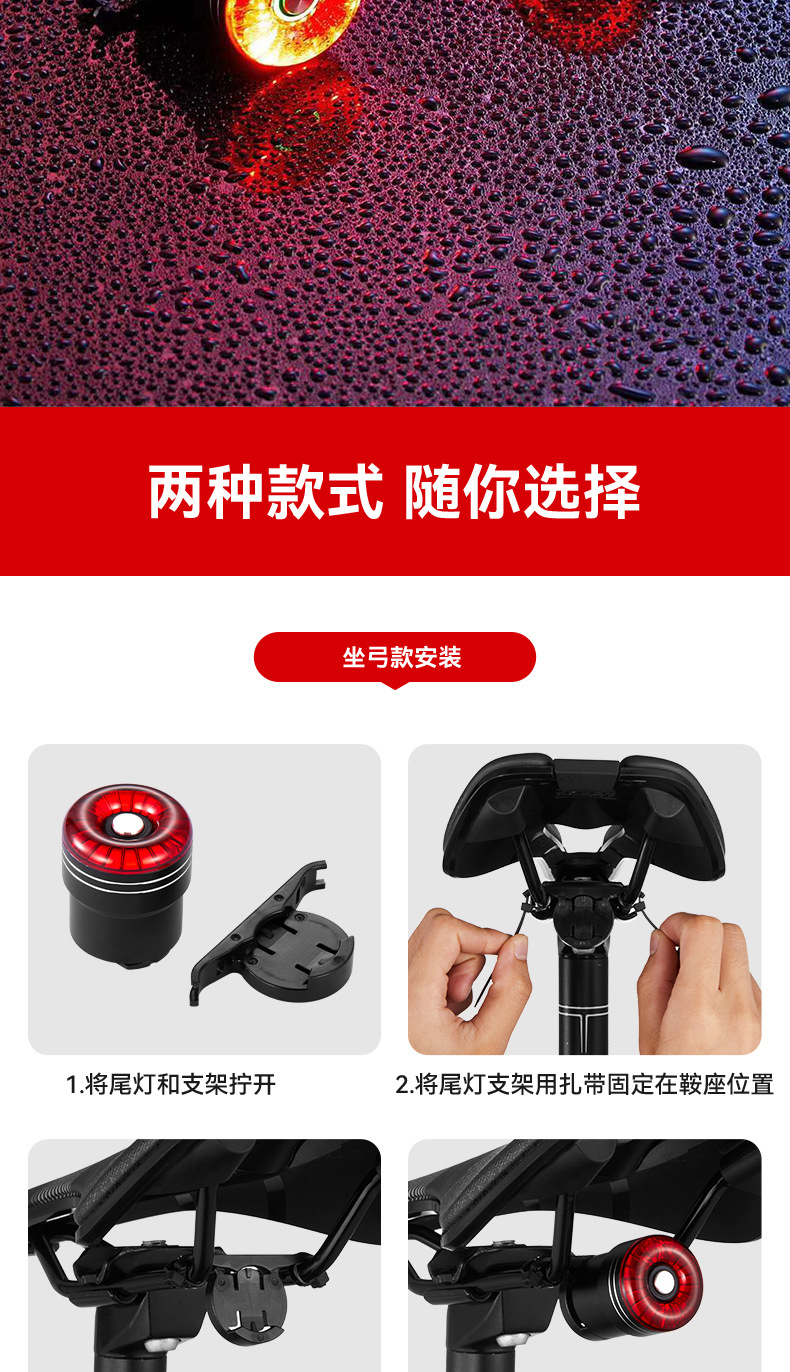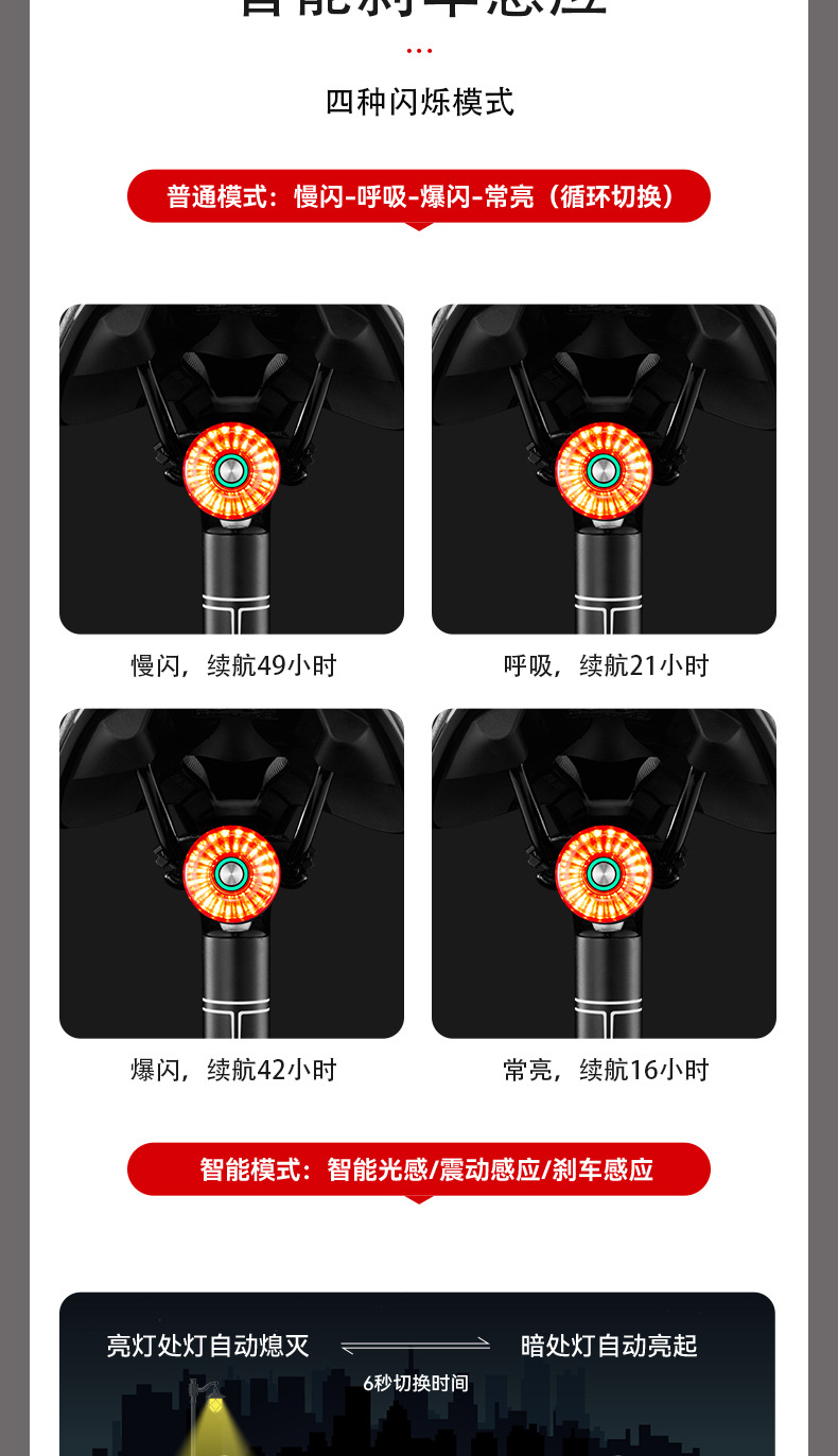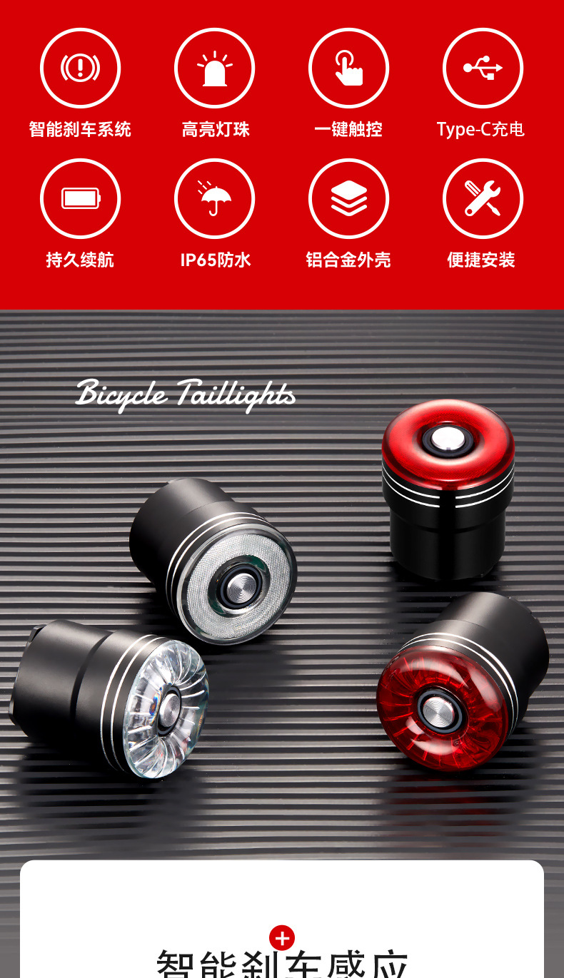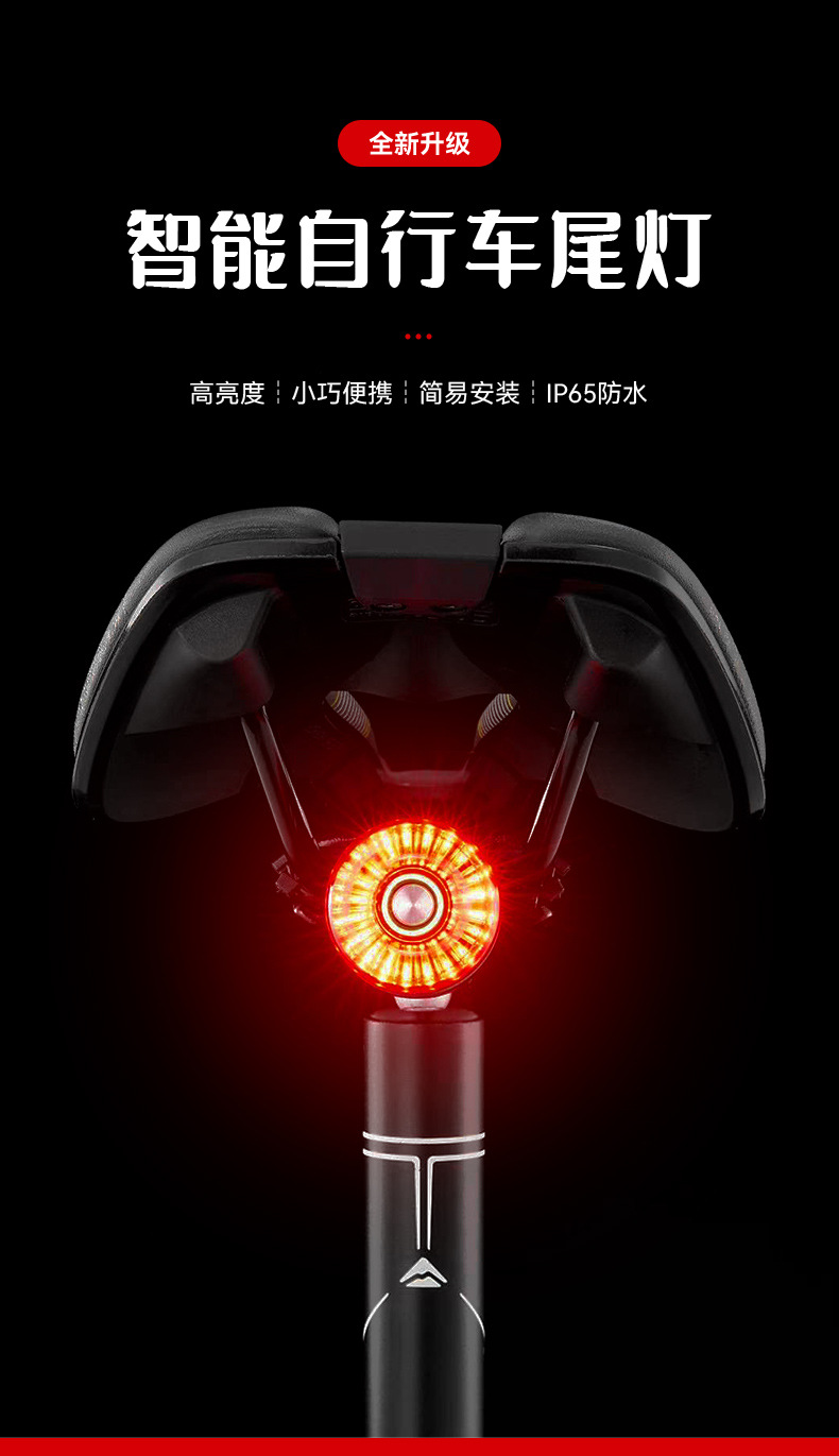 公路车智能刹车尾灯光山地自行车LED夜骑配件骑行装备灯配件