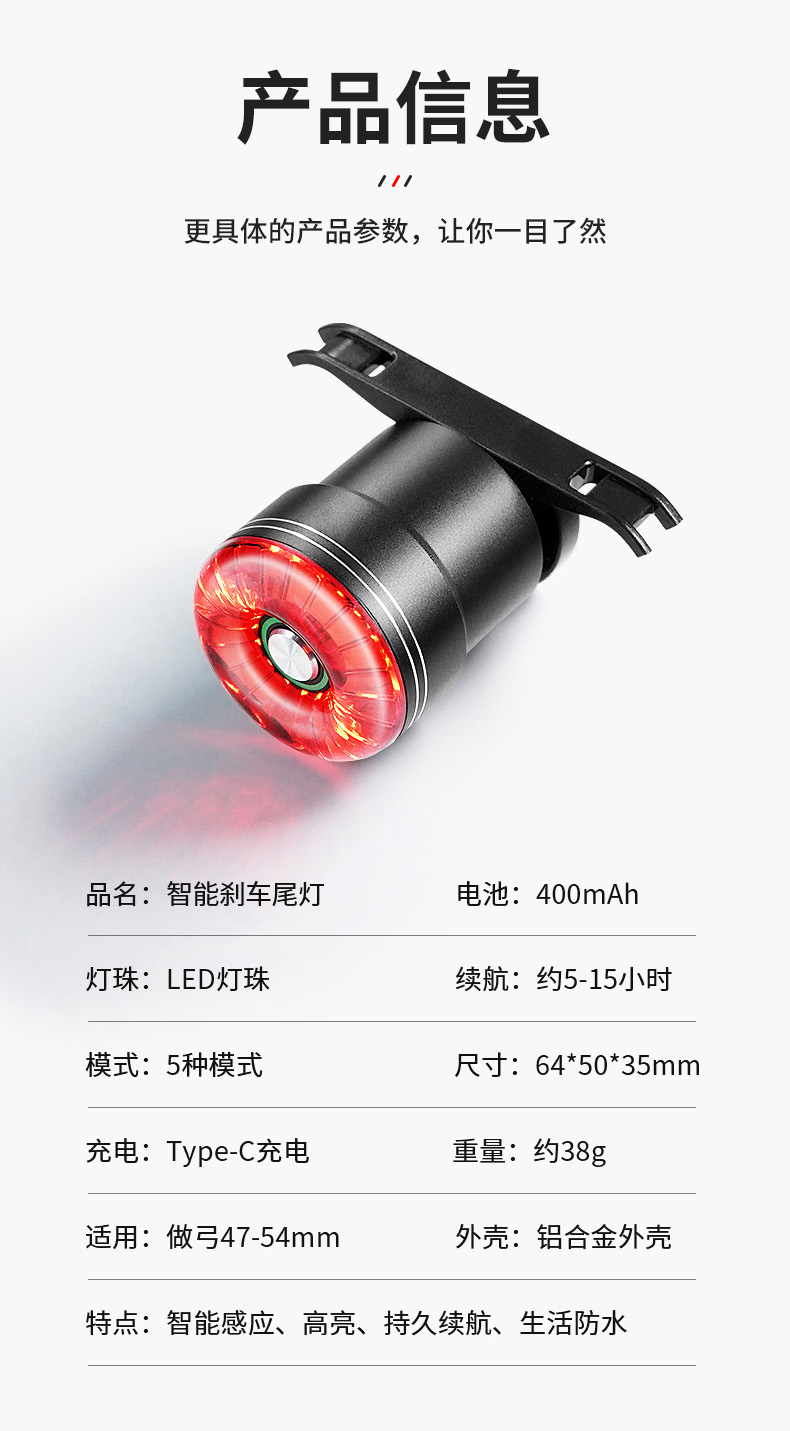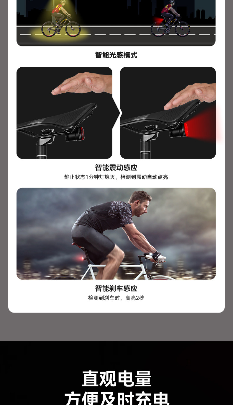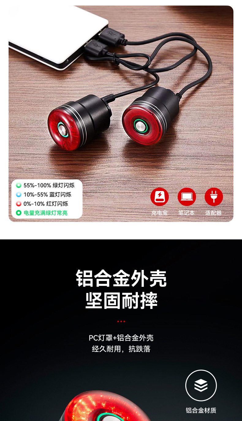 公路车智能刹车尾灯光山地自行车LED夜骑配件骑行装备灯配件