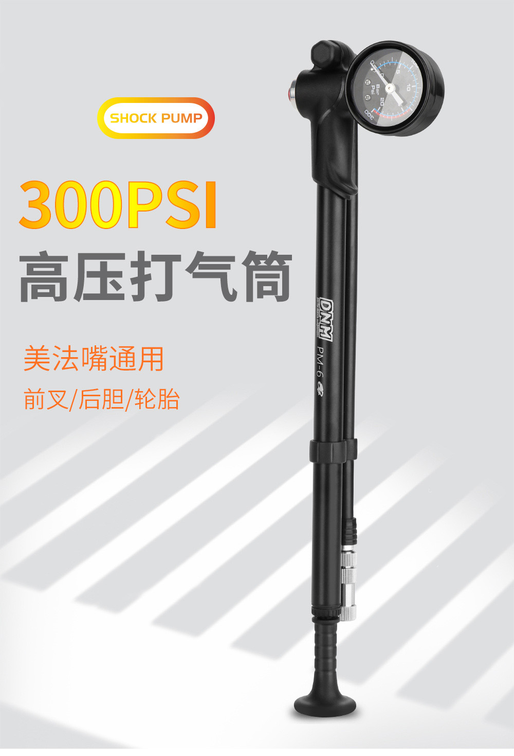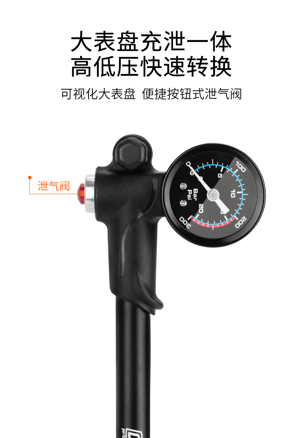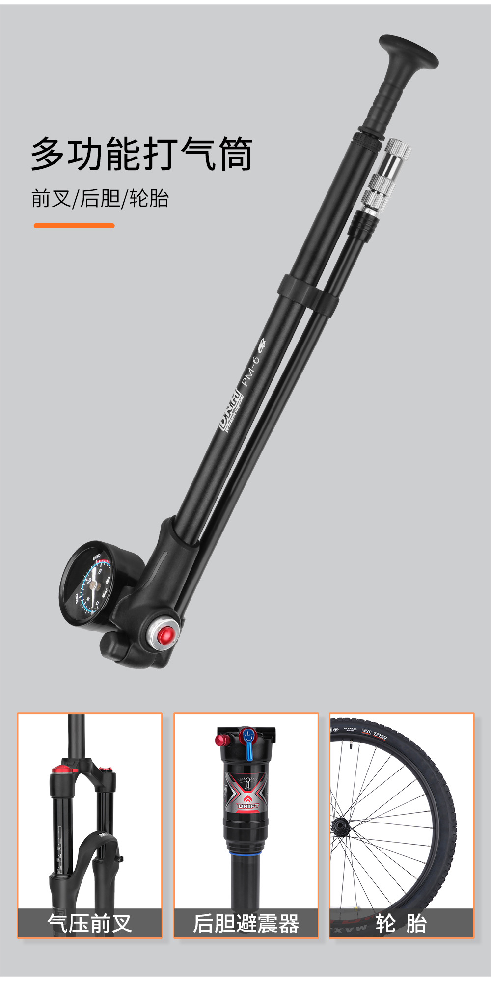 高压打气筒自行车避震器前叉便携铝合金充气筒带气压表装备