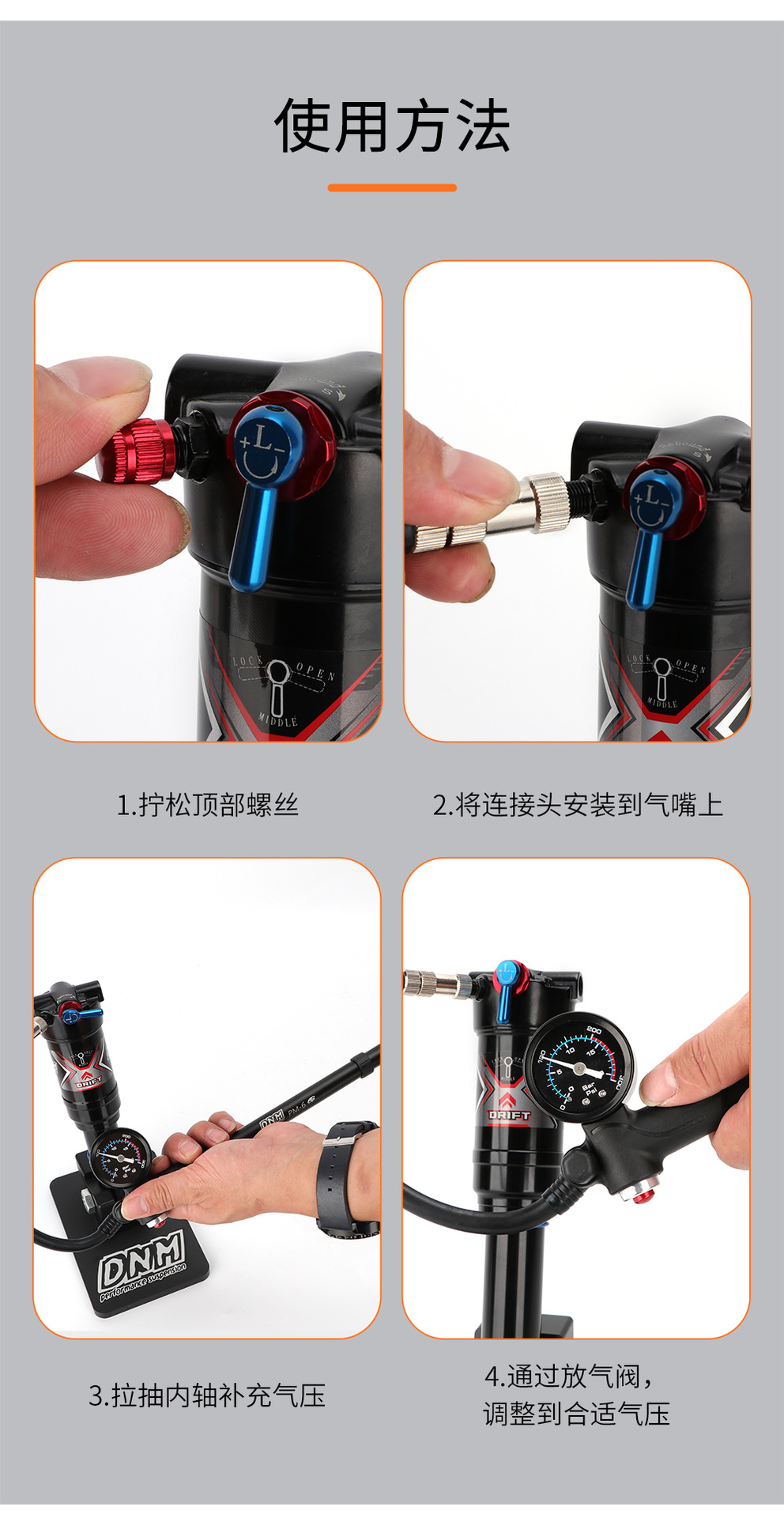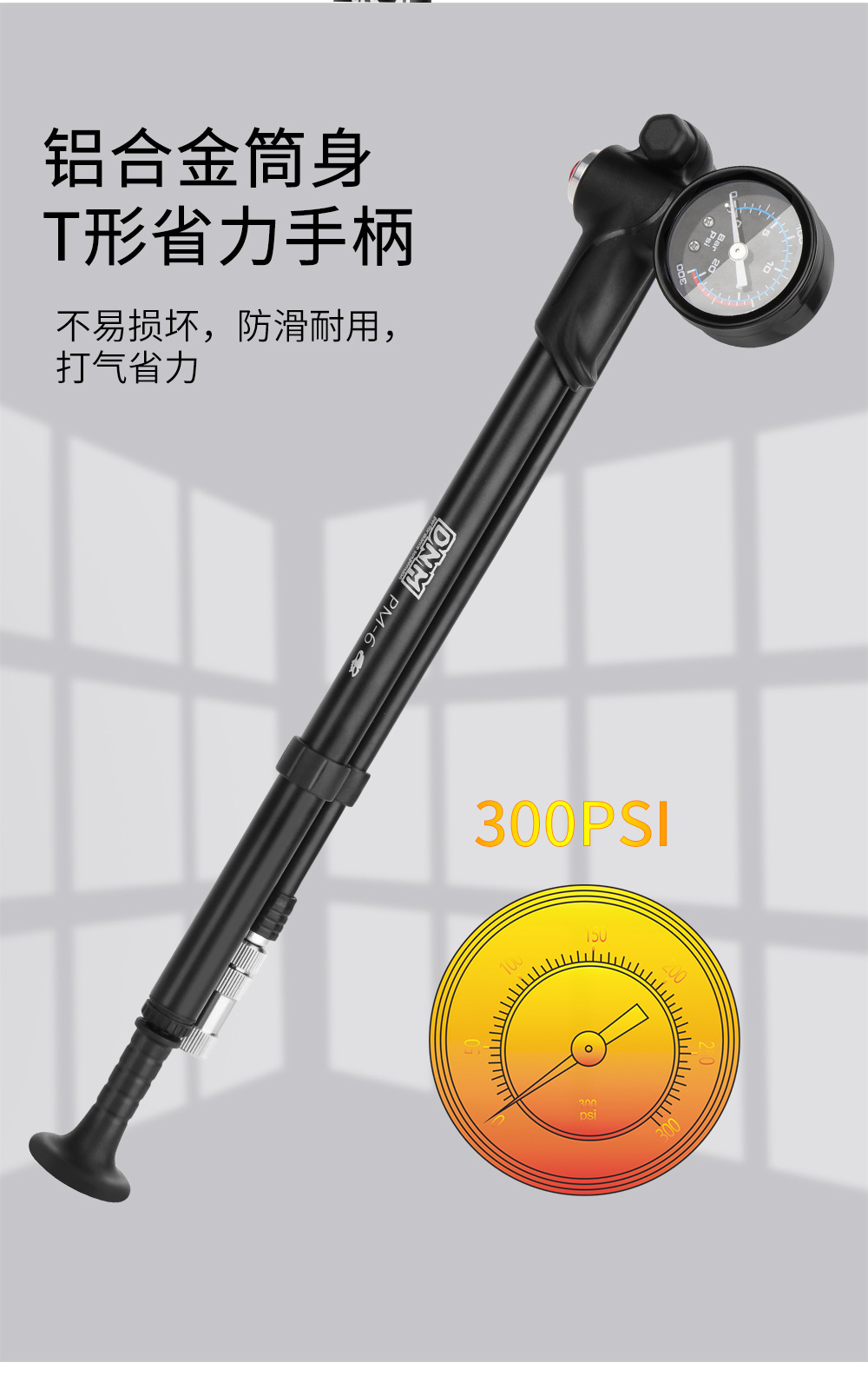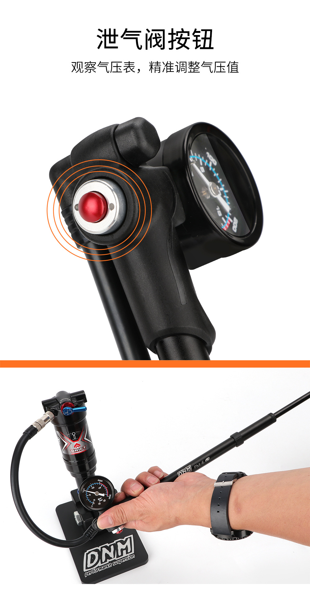 高压打气筒自行车避震器前叉便携铝合金充气筒带气压表装备
