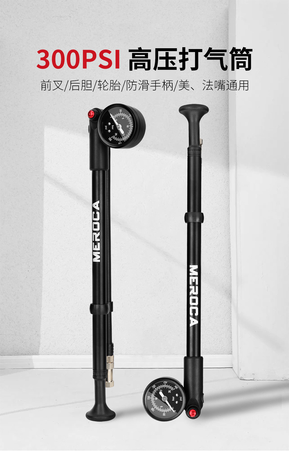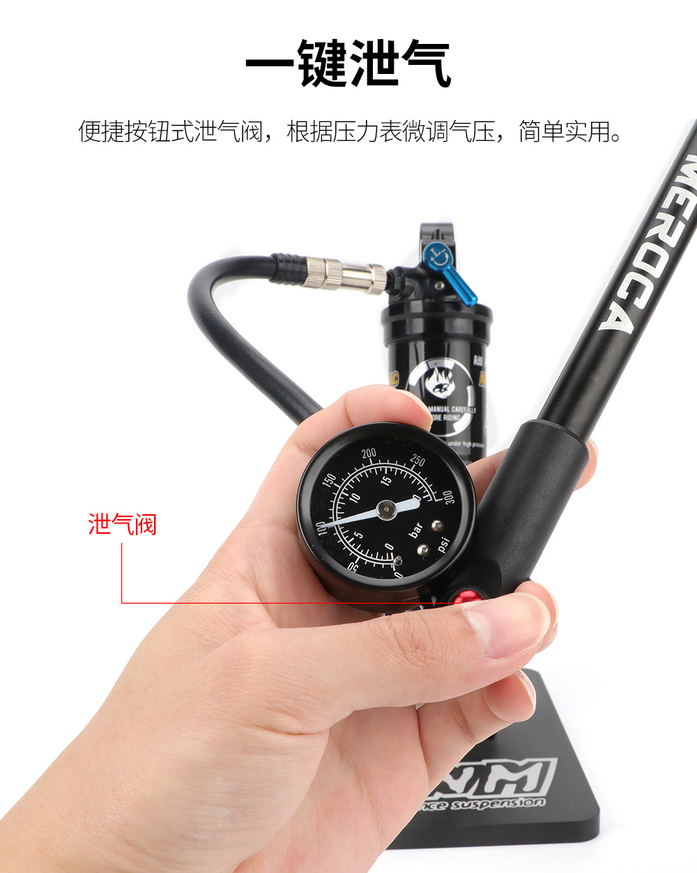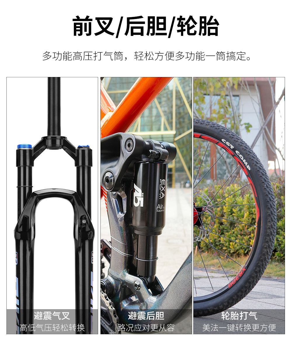 自行车避震器高压打气筒 山地车气压前叉后胆便捷式充气泵300PSI