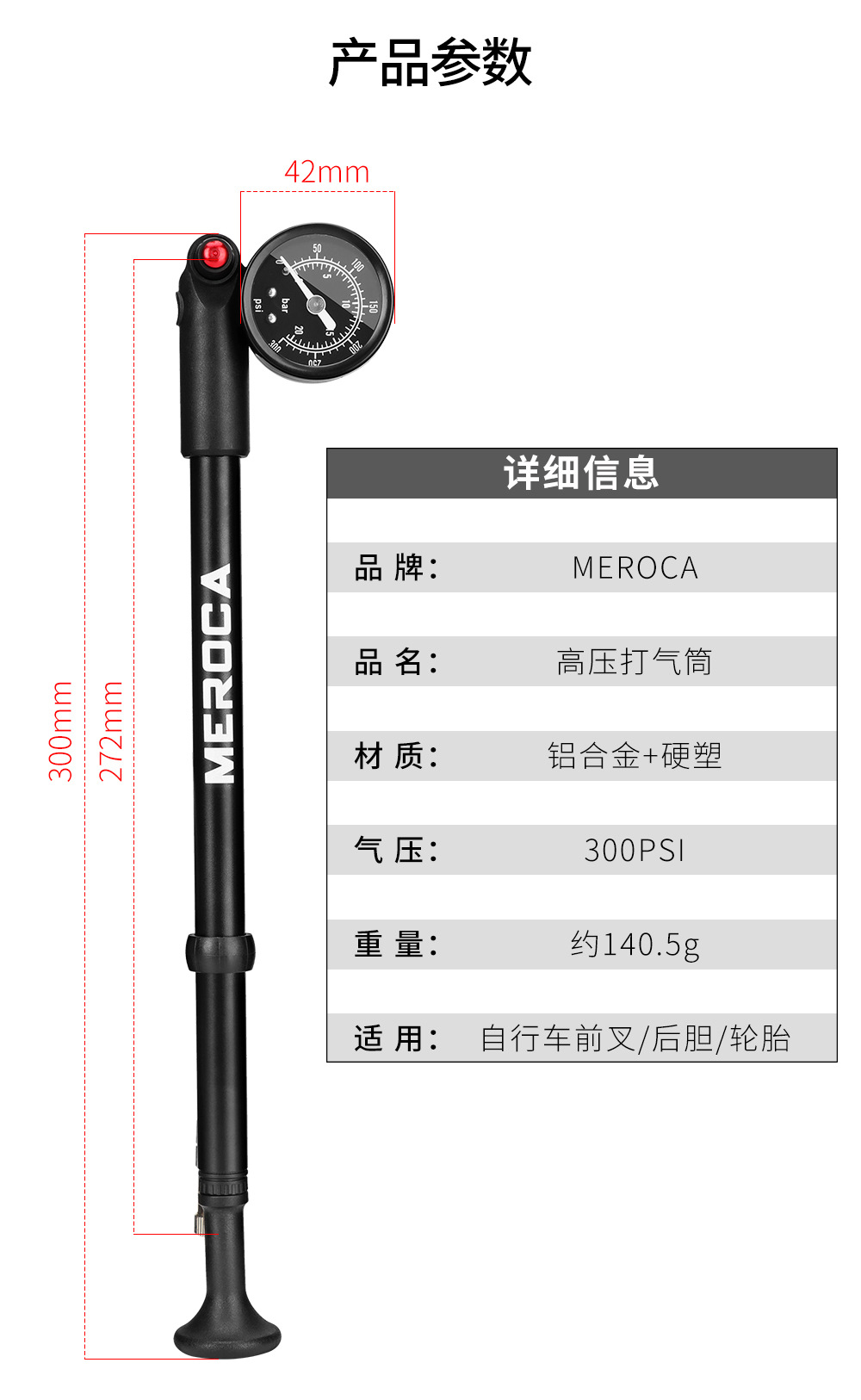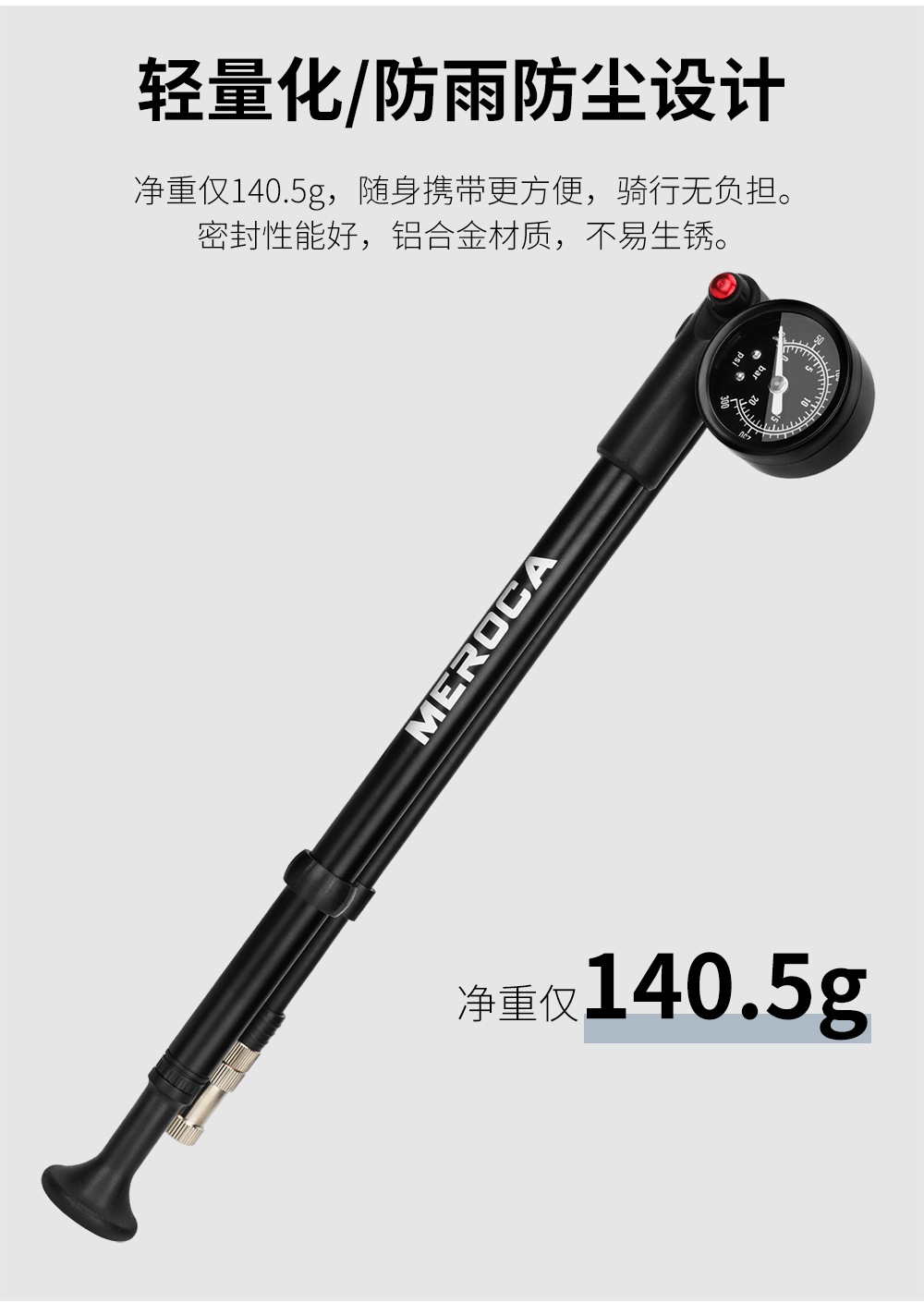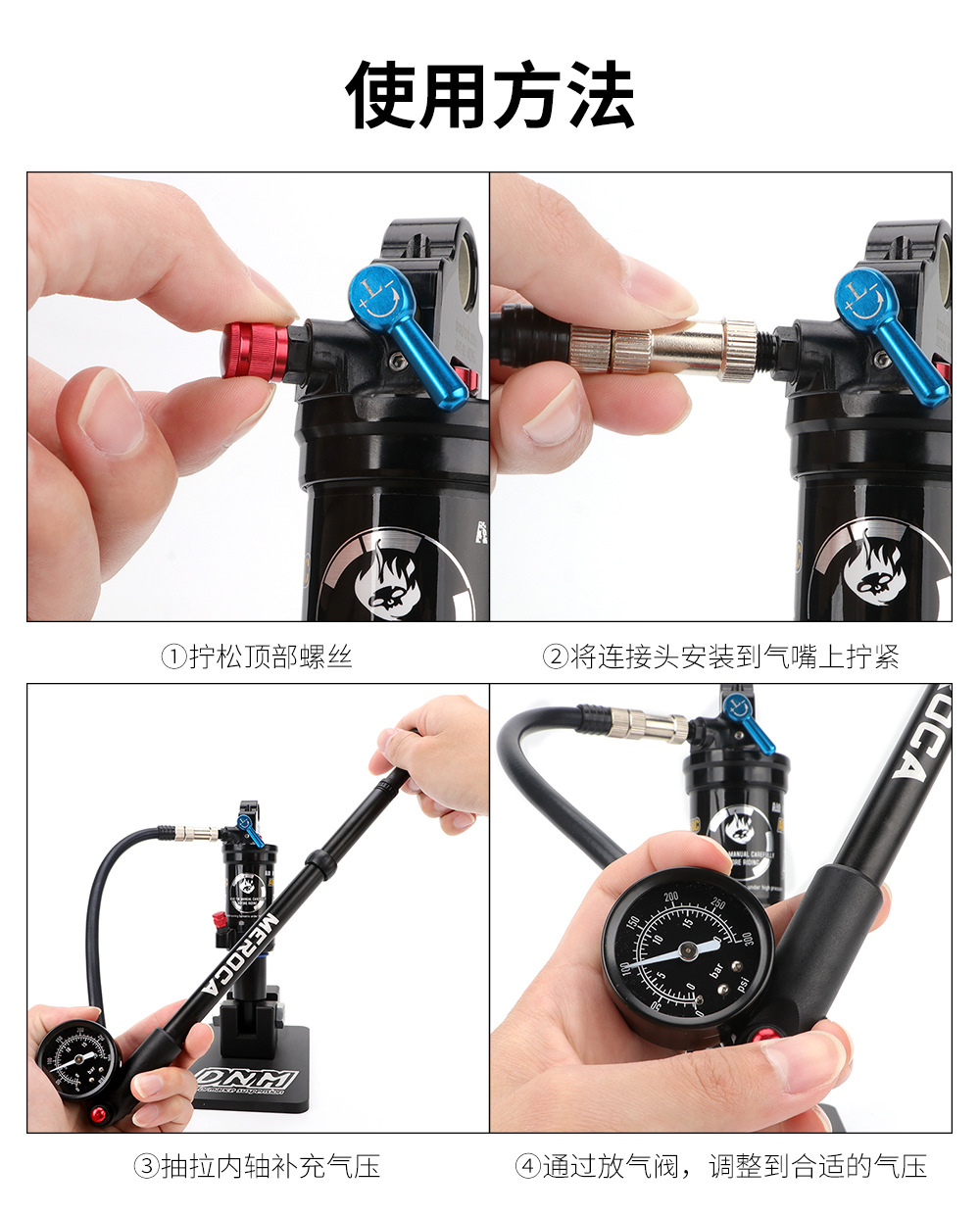 自行车避震器高压打气筒 山地车气压前叉后胆便捷式充气泵300PSI