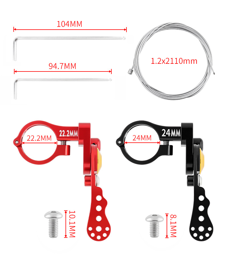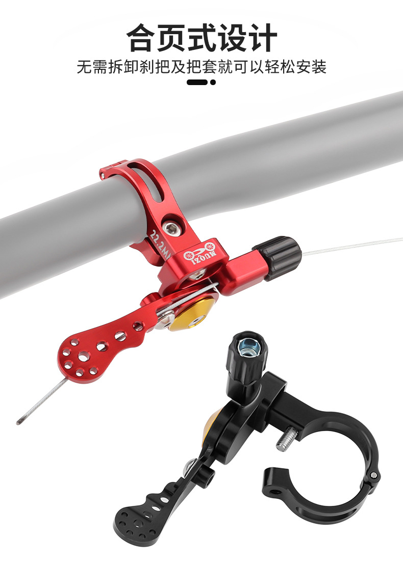 安装规格:适合22.2/24MM的车把使用,购买前请确定好自己的车把规格。 装上以后,按钮是相当于左手变速器的指拨位置,比在把横上面的线控器,更符合骑行时的手指的角度,不需松开手刹就可以调节,更方便更安全。
